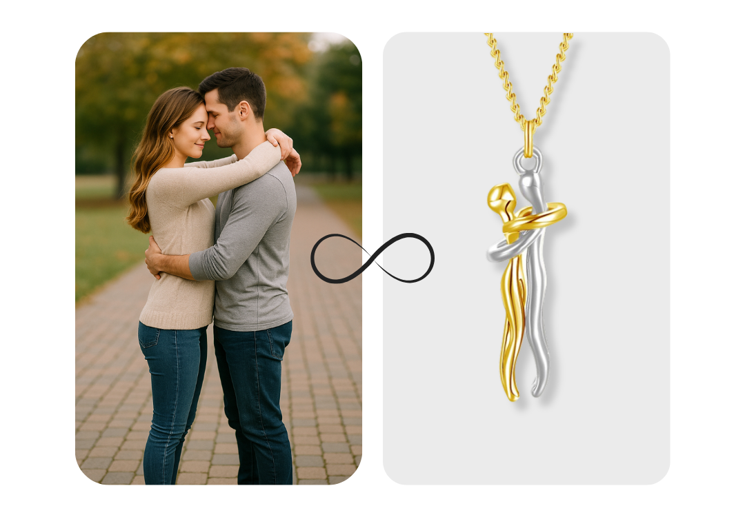The EverEmbrace™ Necklace was inspired by a quiet moment — a simple hug that said everything words couldn’t. That single embrace carried the warmth of connection, comfort, and understanding between two hearts.